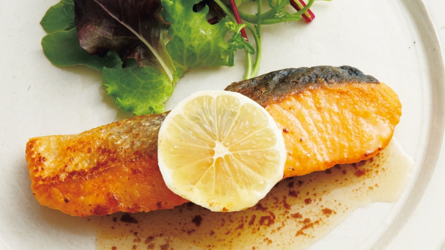 さけを焼いたフライパンを洗わずにソースをつくり、さけのうまみを生かす。
