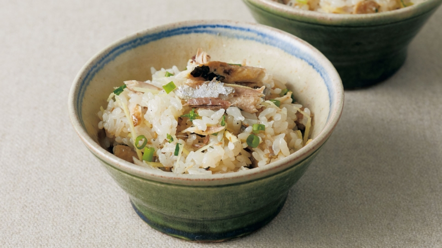 さんまの塩焼きを利用したご飯物。苦みの出やすい内臓は取り除き、うまみのある骨はつけたまま炊き込みます。