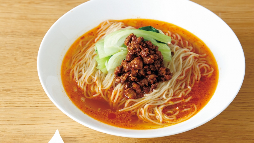 ごまの香ばしいコク、ピリッとした辛み、ひき肉のうまみが後を引く人気の麺。本来は汁なし麺なので、スープは少なめです。