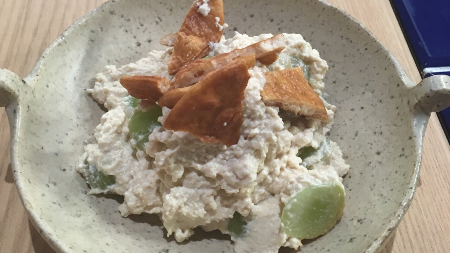 すり鉢に1の豆腐をつぶして入れ、練りごまを入れて混ぜ、【A】の調味料を加えて混ぜ合わせる。