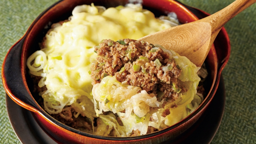 甘いねぎとピリッとしたしょうがで肉ダネをはさむように重ねた、ボリュームたっぷりの一品。ねぎは青い部分も刻んで余さず使い切ります。