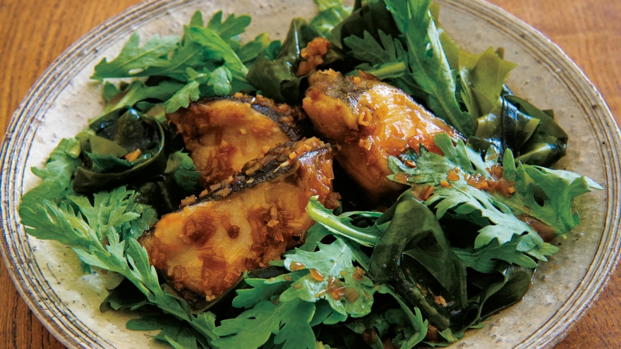 おいしい銀だらの切り身が手に入ったら、ピリ辛の煮つけに。わかめと生の春菊を合わせてたっぷりと添えましょう。