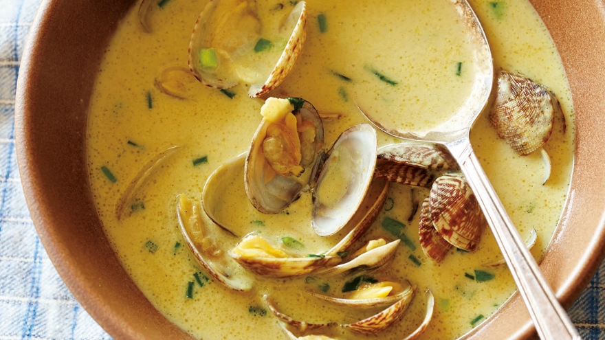 あさりのだしとココナツミルク、カレー粉が三位一体となった、やさしいおいしさのスープです。