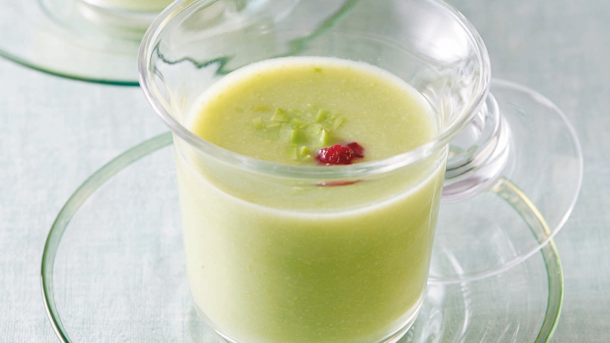 すり流しは、いわば和風のポタージュ。ガラスの器によそえば、目にも涼やかな冷製スープに。