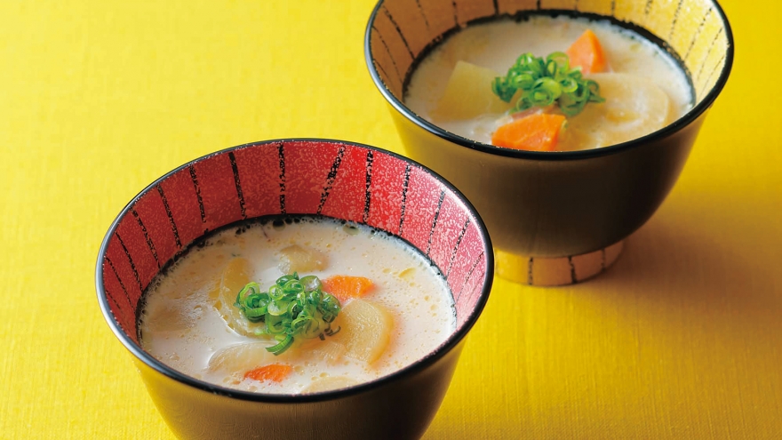 具だくさんの汁物は食材からうまみが溶け出すのでだしいらず。牛乳と相性抜群のみそが、全体のまとめ役。
