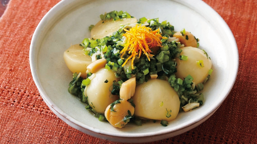 帆立てのうまみを、柔らかく煮たかぶにとろみをつけて閉じ込めます。忙しいときは、煮る前にかぶをレンジに約5分かければ、時間短縮に。