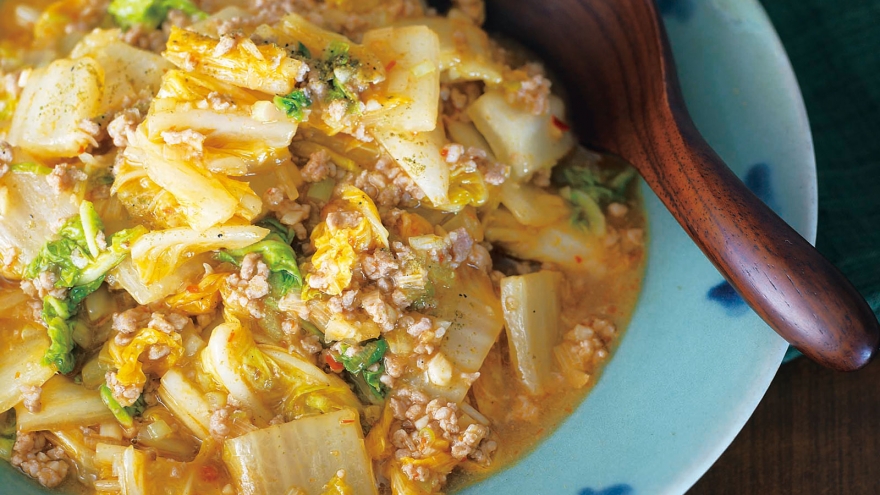 あっさりした白菜にパンチのある肉みそがマッチ。白菜の甘みが豆板醤の辛みで一層引き立ちます。