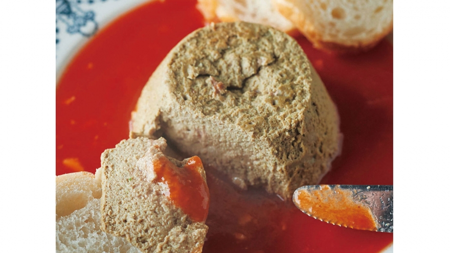 卵や牛乳、パセリなどを加えてなめらかなペーストにし、ホカホカに蒸します。まろやかでリッチなおいしさで、トマトソースがよく合う!