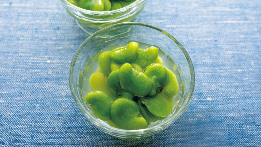 鍋に【煮汁】の材料を入れてひと煮立ちさせて調味料を溶かす。そら豆を加え、4~5分間中火で煮て火を止める。