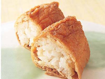 色濃く、甘辛く煮た油揚げに、シンプルにすし飯を詰めます。