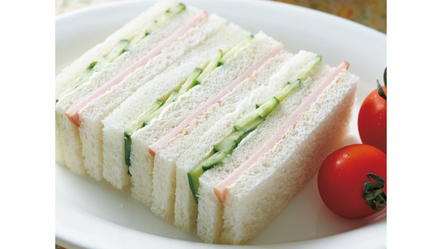 食パン3枚で1組にするお店風サンドイッチ。ハムときゅうりは薄いので切りやすく、初めてでもきれいにつくれます。