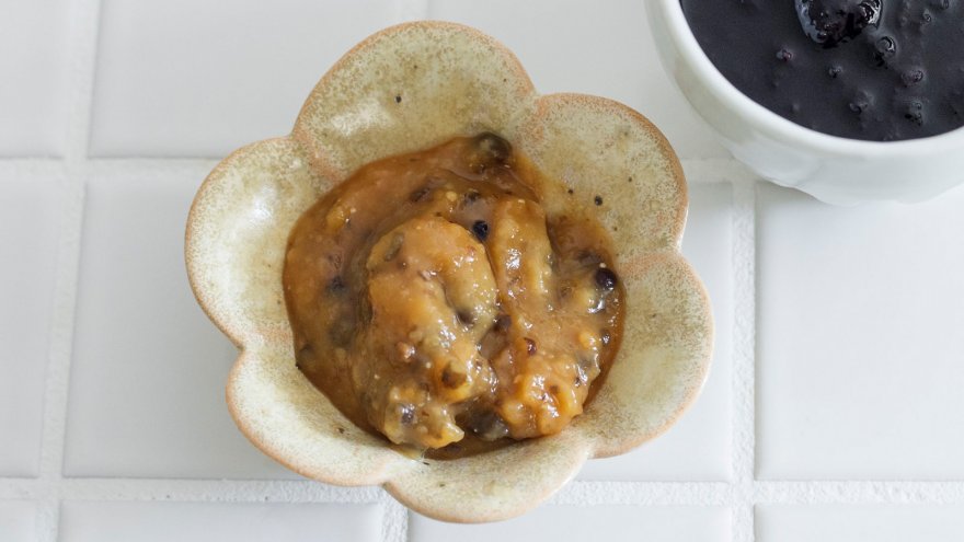 小鍋に白みそ・みそ、酒・みりんを入れて中火にかける。煮立ったら砂糖を加えて火を止める。刻んだ実ざんしょうのつくだ煮を加えて混ぜる。