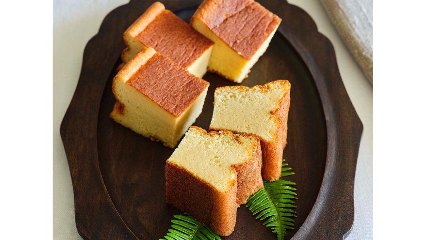 生地を型に流し入れ、表面を軽くならす。150℃のオーブンで約1時間焼く。型から外し、食べやすく切る。