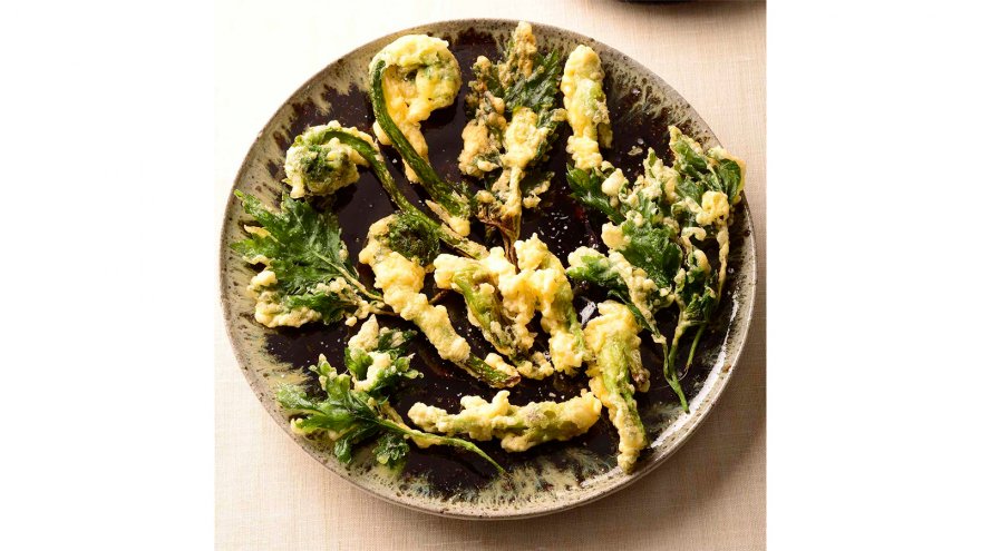 たらの芽、こごみ、よもぎにそれぞれ【衣】をつけ、4に入れて上下を返しながらカラリと揚げる。油をよくきって器に盛り、塩をふって食べる。