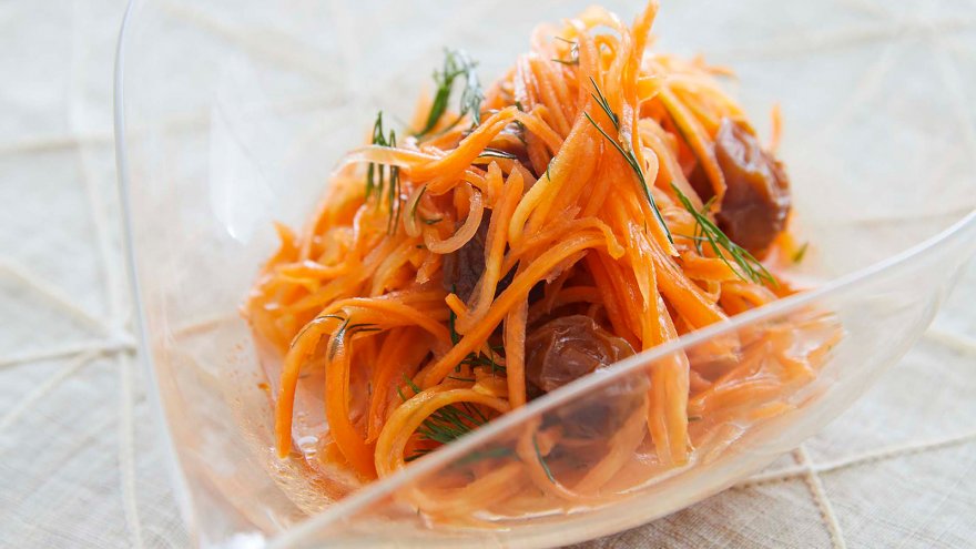 にんじんは、スライサーで5~6cm長さのせん切りにする。