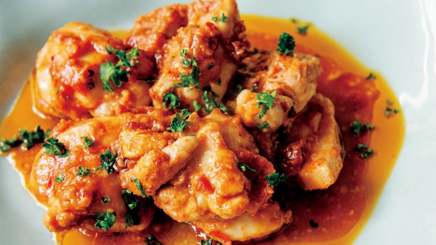 「トマト醤(ジャン)」をもみ込んだ鶏肉は、柔らか~く、うまみたっぷり。汁も余さず、ご飯にかけたりパンにつけたりして味わって!ピーマンやズッキーニ、なすなどの夏野菜を加えても。