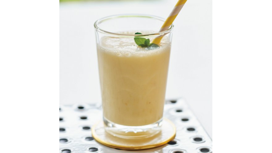 パイナップルは皮をむいて芯を除き、一口大に切る。ヨーグルトとともにミキサーにかけ、味をみて甘さが足りなければ、砂糖(分量外)を加える。グラスに注ぎ入れ、あればミントの葉をあしらう。