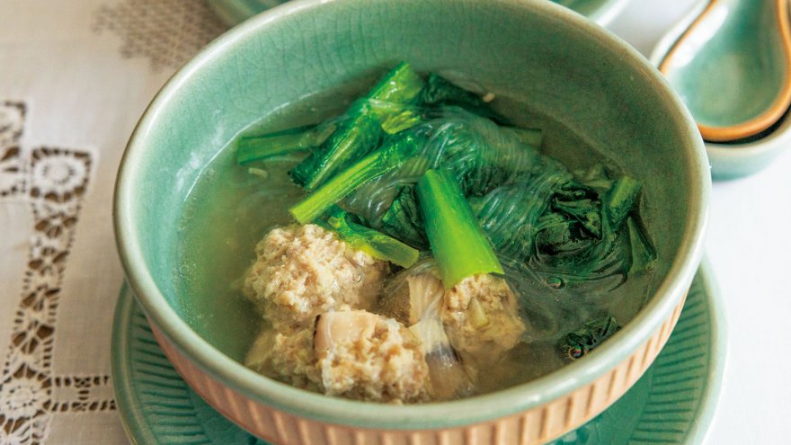 フワッフワの肉だんごが絶品!小松菜のかわりにわかめ、クレソンなどを入れても◎。