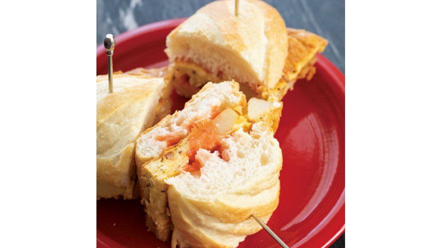 スペインのサンドイッチ「ボカディージョ」。地域ごとにバリエーションがあり、ヤミーさんのイチオシは、じゃがいものトルティージャ(卵焼き)をはさんだもの!塩味とにんにくのきいた卵焼きは、サンドイッチの具にぴったりです。