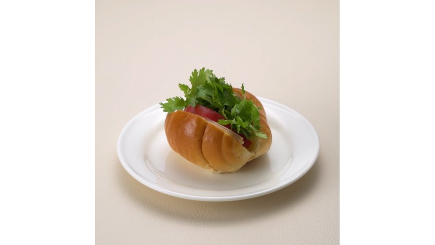 切り口にマヨネーズを塗り、半分に切ったハム、薄切りにして半分に切ったトマトをはさむ。
