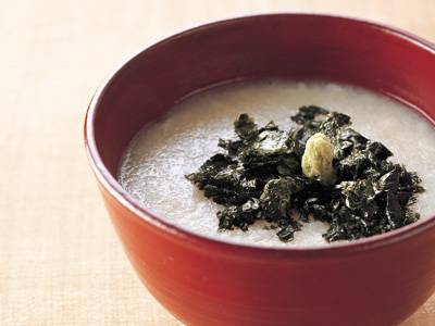だしで煮ると、ご飯の持つ甘みが出ます。フワフワのとろろと一体になって、のどごしのよい一品。