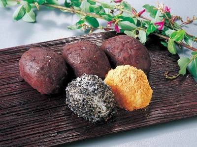 手軽に炊飯器で炊きおこわをつくり、おはぎにします。粒あん、きな粉、黒ごまをまぶして三色仕立てに。