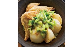 かぶは皮ごと大きめに切るので煮くずれなし。やさしい味わいのかぶにえびのそぼろがからみます。かぶの葉は細かく刻んで、ご飯がおいしい一品に。