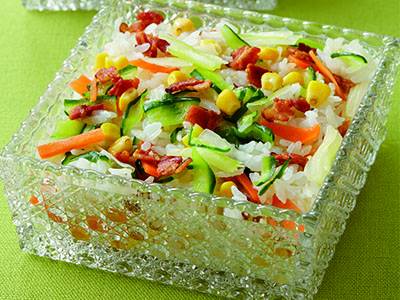 とうもろこしの黄色い粒々に気分が上がる、夏ならではの炊き込みご飯。炊いているときの豊かな香りも、食べたときの口に広がる甘みも格別です。炊き上がってから梅干しを混ぜても、味にメリハリが出ておすすめです。