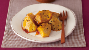 鶏肉のボリュームとしょうゆの香ばしさが相まって、さつまいもがご飯のすすむおかずになります。
