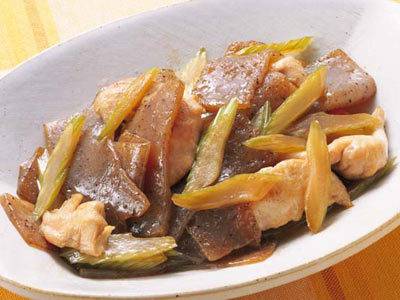 かみごたえのあるこんにゃくに、鶏ささ身をプラスして満足感のあるおかずに。少量のオイスターソースで風味づけをします。