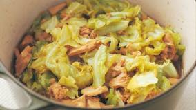 甘塩ざけは、そのまま焼くだけではもったいない、応用のきく食材です。蒸し焼きなのでキャベツもかさが減り、たっぷり食べられます。