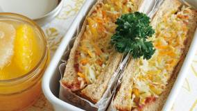 焼いたコールスローサラダがパンの間でギュッとまとまって、おいしさだけでなく食べやすさもアップします。
