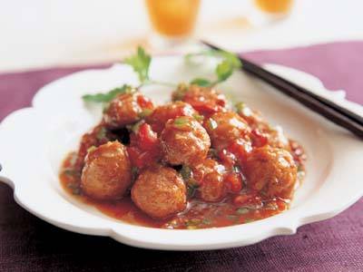 生地に豆腐を加えてふっくらと仕上げます。フレッシュなトマトを使った甘酸っぱいソースでどうぞ。