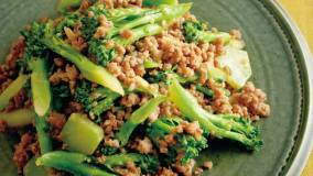 ひき肉をよく炒めてうまみを引き出し、ブロッコリーにたっぷりからめていただきます。