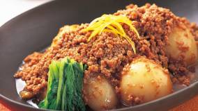 ふっくら、ジューシーの秘密は、マヨネーズとかたくり粉を加えたつけ汁。そぎ切りにした鶏むね肉にからめて焼けば、パサつくこともありません。ねぎと菜の花の蒸し炒めが、食べごたえのある付け合せに。お弁当にも。