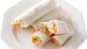 春巻の皮に野菜とツナを包んで、北京ダック風に。しっかり味つけしたツナとシャキシャキの野菜で、たれいらずのお手軽なオードブルに。