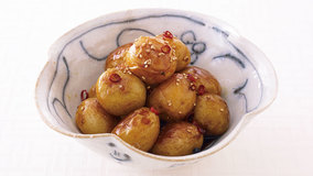小粒な新じゃがを半割りにして、皮をこんがりと香ばしく焼くと、煮汁もからみやすくなります。皮の香りや食感は新じゃがならではのおいしさです。