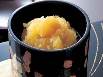 柚子とはちみつの相性のよさは、誰もが知るところ。これを栗きんとんにとり入れたら、さっぱり食べやすく、ヘルシーになりました。