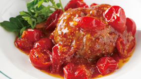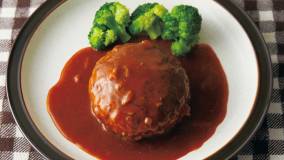 意外と焼き加減が難しいハンバーグは、ソースで煮込んで仕上げると、失敗なくつくれます。トマトジュースで簡単に本格的な味わいに。