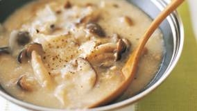きのこといっしょにおいしく煮上げた豆腐に、きのこのうまみを閉じ込めたあんをかけると、のどごしがやさしい滋味深い一品に。
