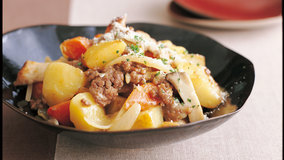 新じゃがいもは、表面を油でカリッと焼いてから煮ると皮もおいしく食べられ、煮汁もよくからみます。