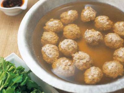 れんこんで食感を、いかワタでうまみをアップした豚だんごが格別です。ナムプラーがエスニックな風味をプラスします!