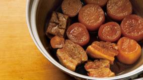 ツヤツヤのべっこう色に煮上げた大根と豚バラ肉の煮物は、煮ている間は手がかからないのでぜひ気軽につくってほしい一品。調味料も同割なのでつくりやすいです。