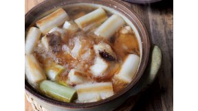 たいのうまみとコクがたっぷり詰まった、ぜいたくなひと鍋。うまみの強いスープも、みぞれ仕立てならスッキリと食べられます。たいはさわらにかえてもおいしい。