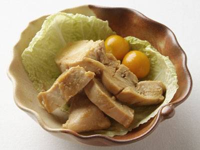 高野豆腐を鶏肉と合わせ、食べごたえのある照り焼きに。焼き目は香ばしく、鶏肉のうまみがジュワッとしみて、いつもの含め煮とは違ったおいしさに出合えます。