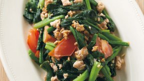 根みつばたっぷりの卵焼きに、あんをかけてボリュームアップ。鶏肉からうまみが出るので、スープいらずで手軽です。