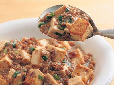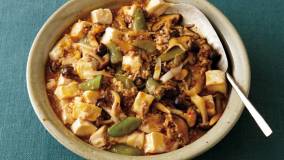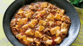 牛乳パワーで、味も見た目もマイルドなマーボー豆腐。まろやかな辛みで食べやすく、トロリとやさしい口当たり。甘酸っぱいミニトマトが、アクセントになります。