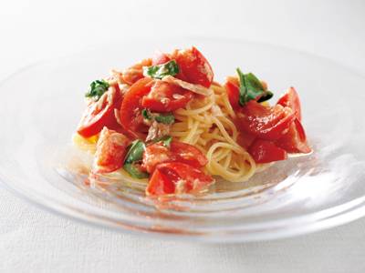 にんにく、オリーブ油、とうがらしを使ったスパゲッティ。油にじっくりとにんにくの香りを移して本格ソースに。野菜はお好みのものでどうぞ。