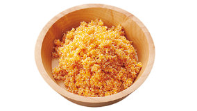 かつおに花かつおをまぶして揚げる「とも揚げ」は、古くからある日本料理です。緑鮮やかなそら豆と盛り合わせて、ごちそうメニューに。