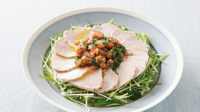 サッとゆでた豚肉と豆苗にねぎラー油だれをのせるだけ。手軽なのに華やかで、ヘルシーなのに満足感ある一品です。豚肉は水にとらずに、しっとりと柔らかく仕上げるのがポイント。